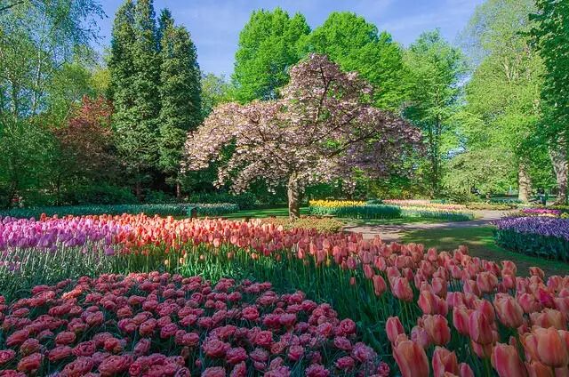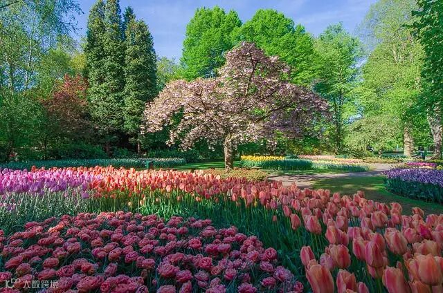每年三四月间,到正处于郁金香花期的荷兰,仿如置身在世界最美的春天里。在荷兰观赏郁金香,最不可错过的是全球最大的郁金香公园——库肯霍夫公园(KeukenhofGardens)。这里号称世界上最美丽的春季公园,无数次的荣获欧洲“最有价值旅游景点”奖。