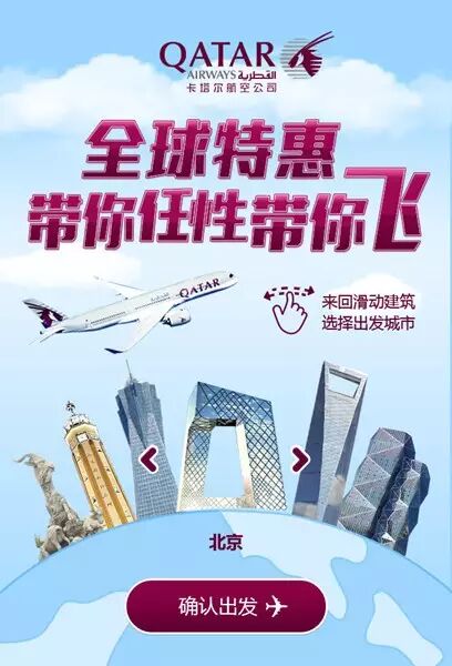 你可以搭乘卡塔尔航空的航班前往遍布全球的140多个目的地,无论是繁华的美洲、广袤的非洲或者古典的欧洲,无论是舒适的经济舱,还是华丽的商务舱,都会让你和Ta不虚此行。