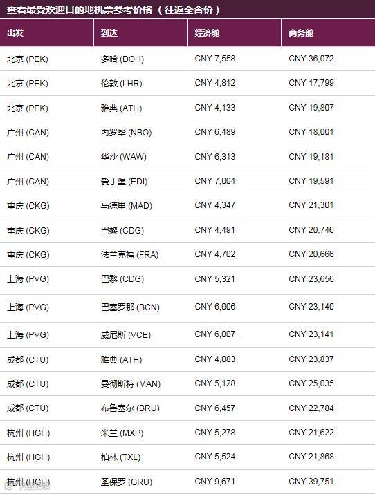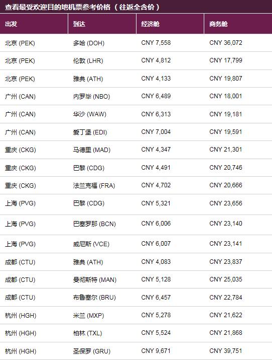 特惠直通:http://www.qatarairways.com/cn/cn/offers/newlook2015.page?cid=SMCN5350 或点击阅读原文查看