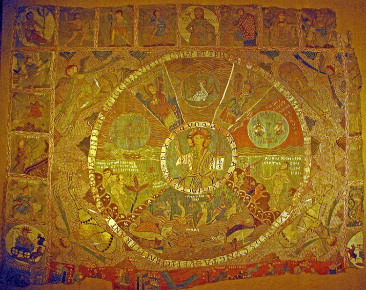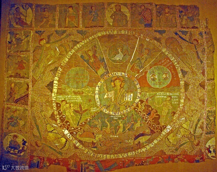 教堂的宝物馆中,收藏着被称为“罗马式的极品”的《天地创造挂毯(Tapisde la Creacio)》。这幅挂毯大约创造于1100年,以刺绣的形式来表现《圣经•旧约》中天地创造的场面。
