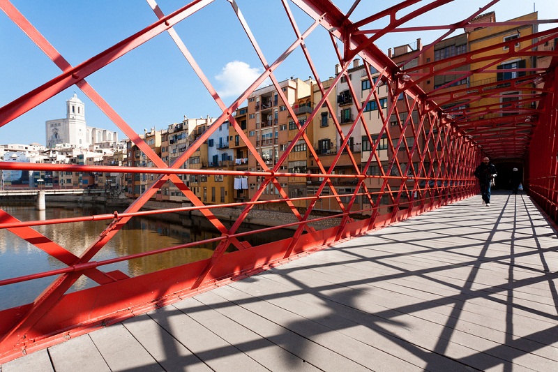 赫罗纳另一个过人之处,就是它美丽的河与河边的建筑。清澈无比的小河将赫罗纳分成了新老两座城,老城一侧的房子被主人漆成了各种艳丽的色彩。不禁让人联想到威尼斯的彩虹岛。然而这里,确有威尼斯没有的静谧与安逸。