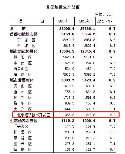 在新的战略定位中,亦庄作为北京的城市发展新区之一,肩负着发展高精尖产业,承载北京实体经济,承接中关村等三大科学城科技成果转化的任务,这种联动效应正逐步加强。2017年数据显示,北京各区规模以上工业总产值中,亦庄的总量和增速分别处于第一和第二的位置。