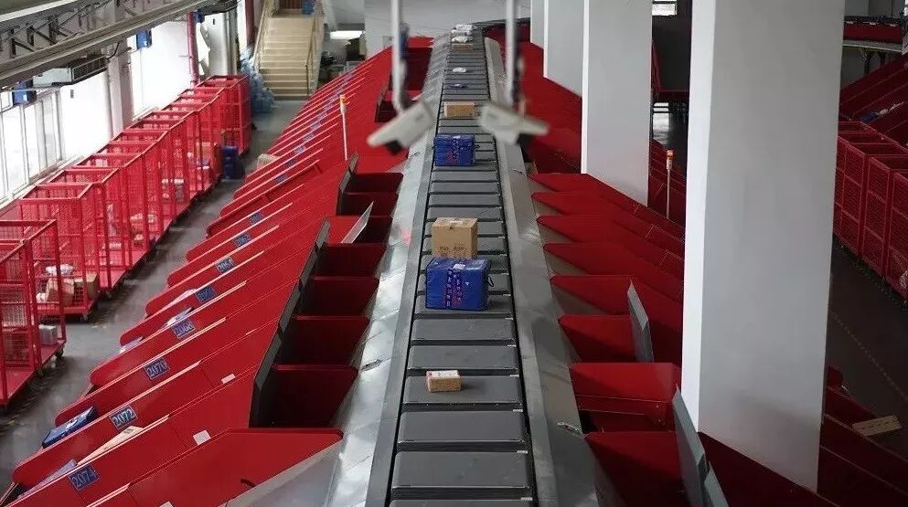 ▲ 亦庄智配中心营业部的货物自动分拣设备