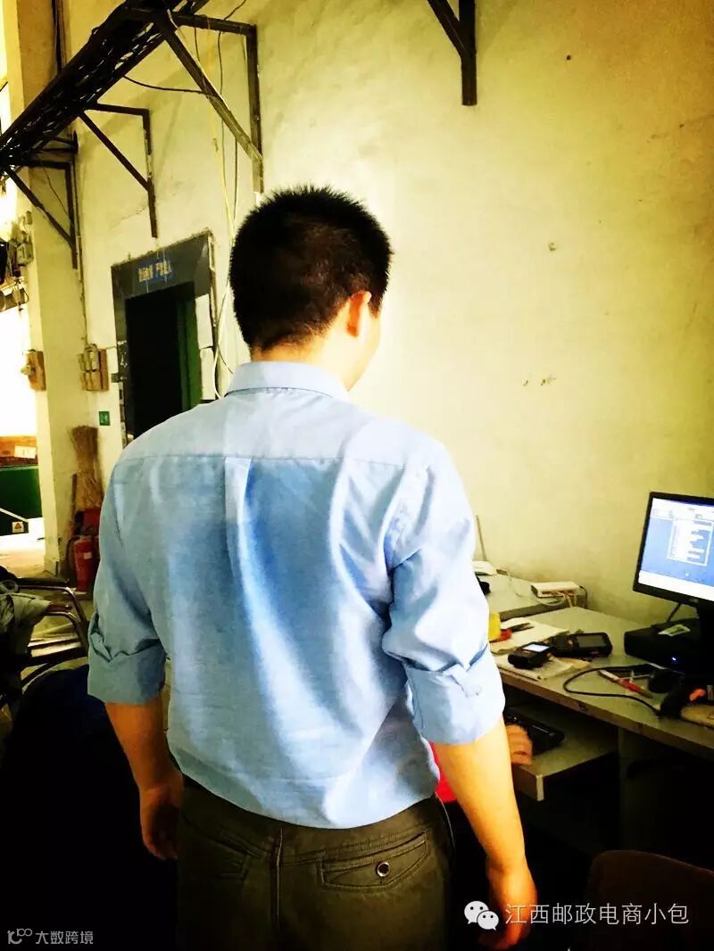 (11月17日,新余市分公司进口邮件激增至9000余件,廖小莉为尽快消化进口,参与分拣扫描工作汗湿衬衣)