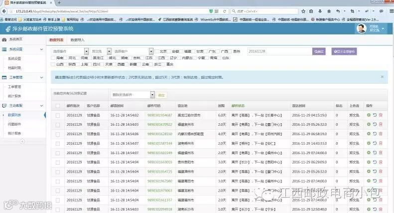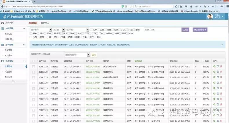 11月11日-30日,小邮们利用预警系统主动跟踪邮件141363件,截止12月4日已妥投邮件139826件,占比98.9%%。处理问题邮件20447件,通过内部客服派发工单2450条。