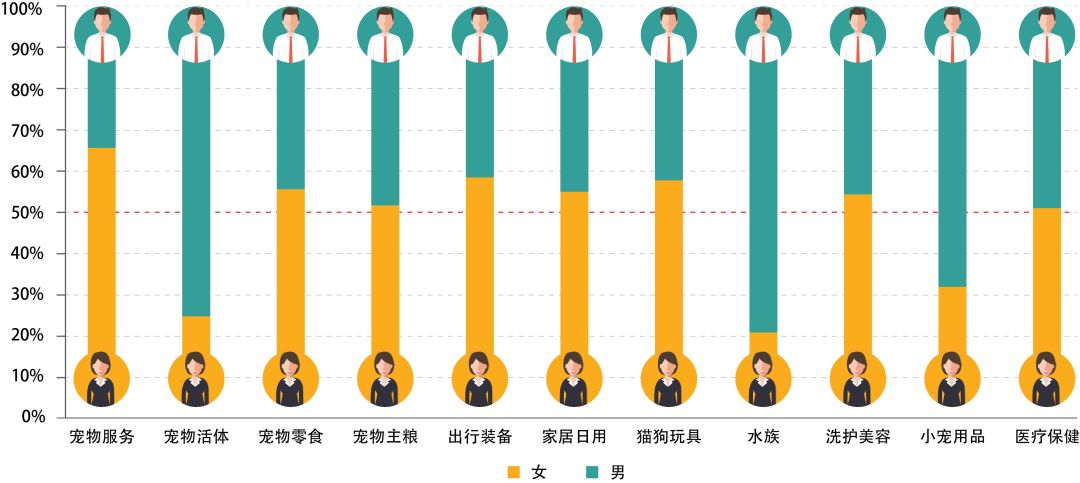 男性消费者更关注“水族”和“小宠用品”