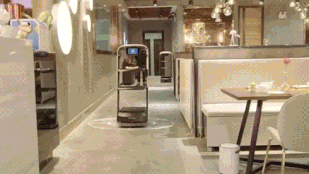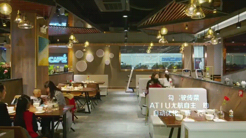 在传菜环节,传菜机器人采用自动驾驶和高精地图技术,通过SLAM导航,可以在餐厅内无轨自主移动,观察周围环境便可自主构建地图,实现室内精确定位。传菜机器人在餐厅里可以自由行走,轻松实现智能避障、自动优化传菜路径,而且充电一次就可以工作一整天,完美承担传菜工作。