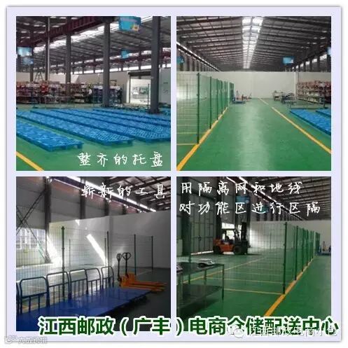 当前,江西邮政(广丰)电商仓储配送中心建设工作已接完成,目前该中心已完成地面漆、功能区划线、货架安装工作,托盘、隔离网等设施配备到位,墙面看板已经全部上墙。