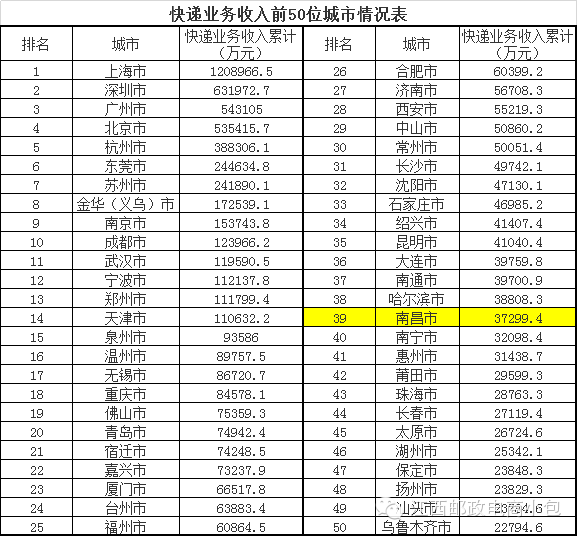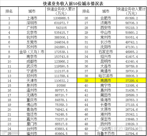 注:邮政行业业务收入中未包括邮政储蓄银行直接营业收入。