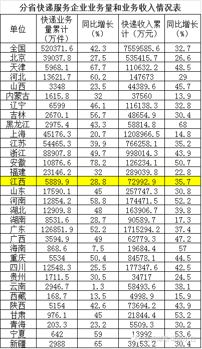 4月份,快递业务量完成15.1亿件,同比增长43.7%;业务收入完成211.9亿元,同比增长35.6%。