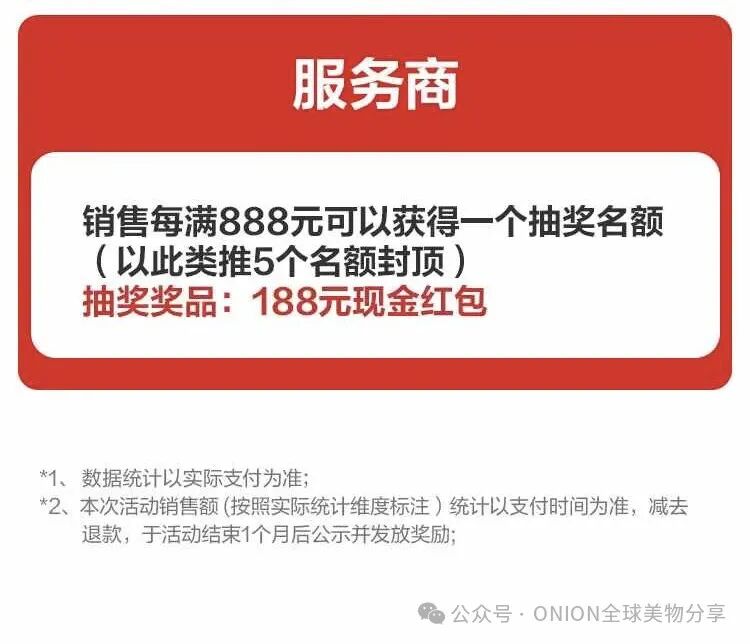 销售额每🈵888元,参与抽188元现金(可叠加,5个名额封顶,共30个