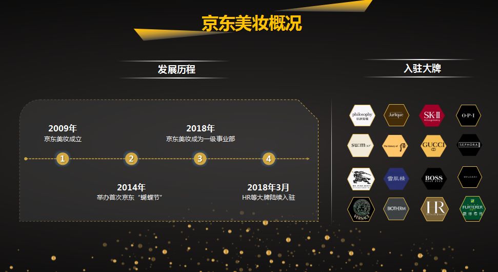 在配送方面,京东通过211限时达、京准达让90% 的美妆订单在24小时内送达,部分顶级美妆品牌还采用京尊达进行配送,让穿着西服的配送人员开着轿车来送货。