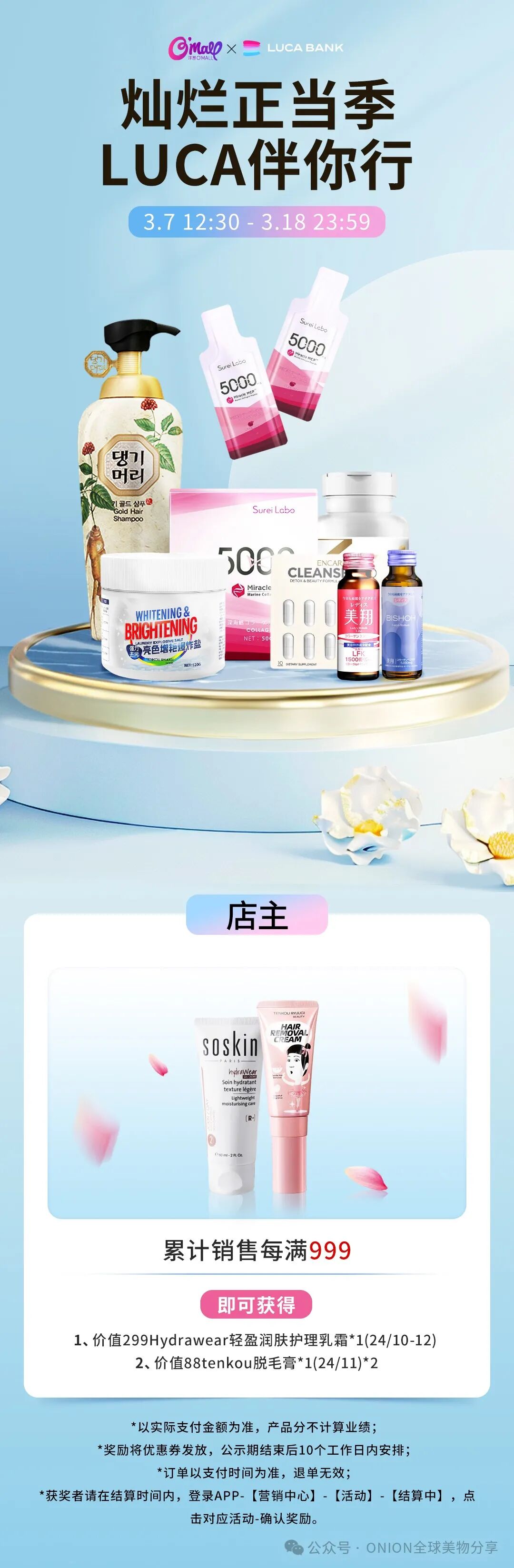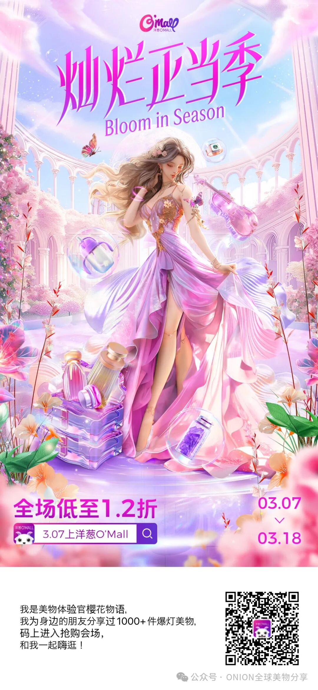 爱自己是终身浪漫的开始,3月7日-3月18日,打开「洋葱O'Mall」APP,送自己一份精致美好,灿烂绽放!