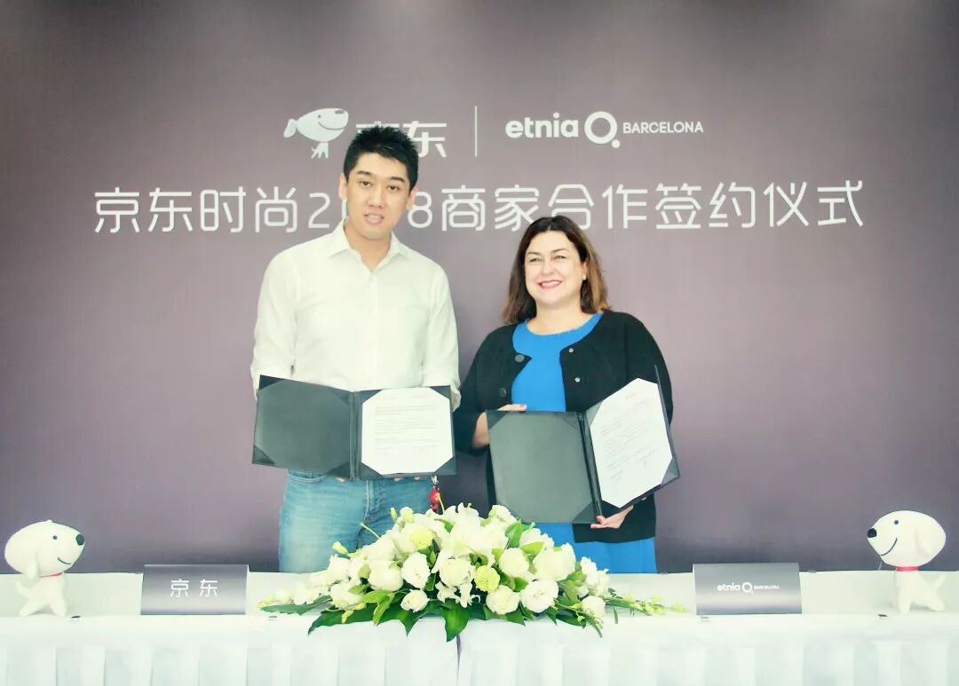 ▲ETNIA BARCELONA LIMITED 亚太区主管 Sophie Pottecher(图右)和京东女装业务部总经理 张亮(图左)出席签约仪式