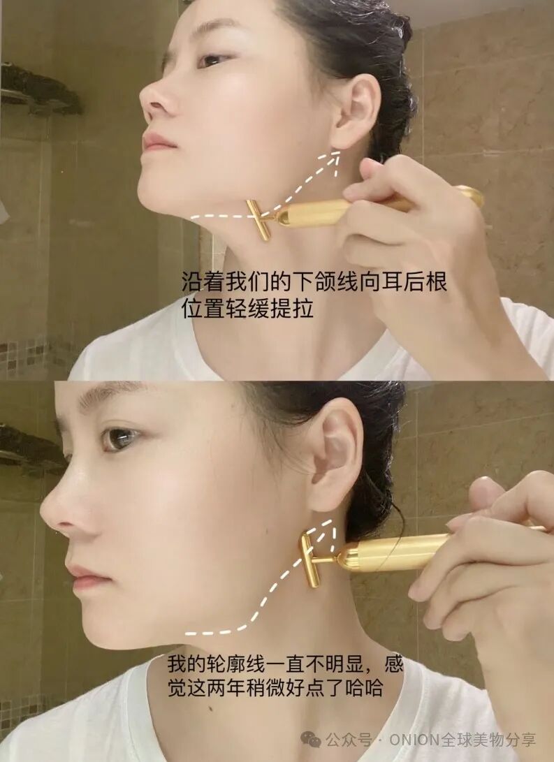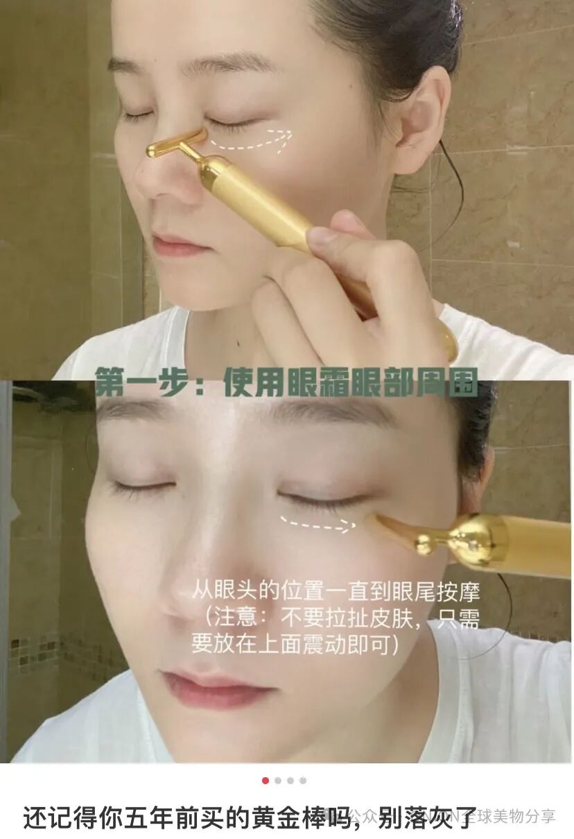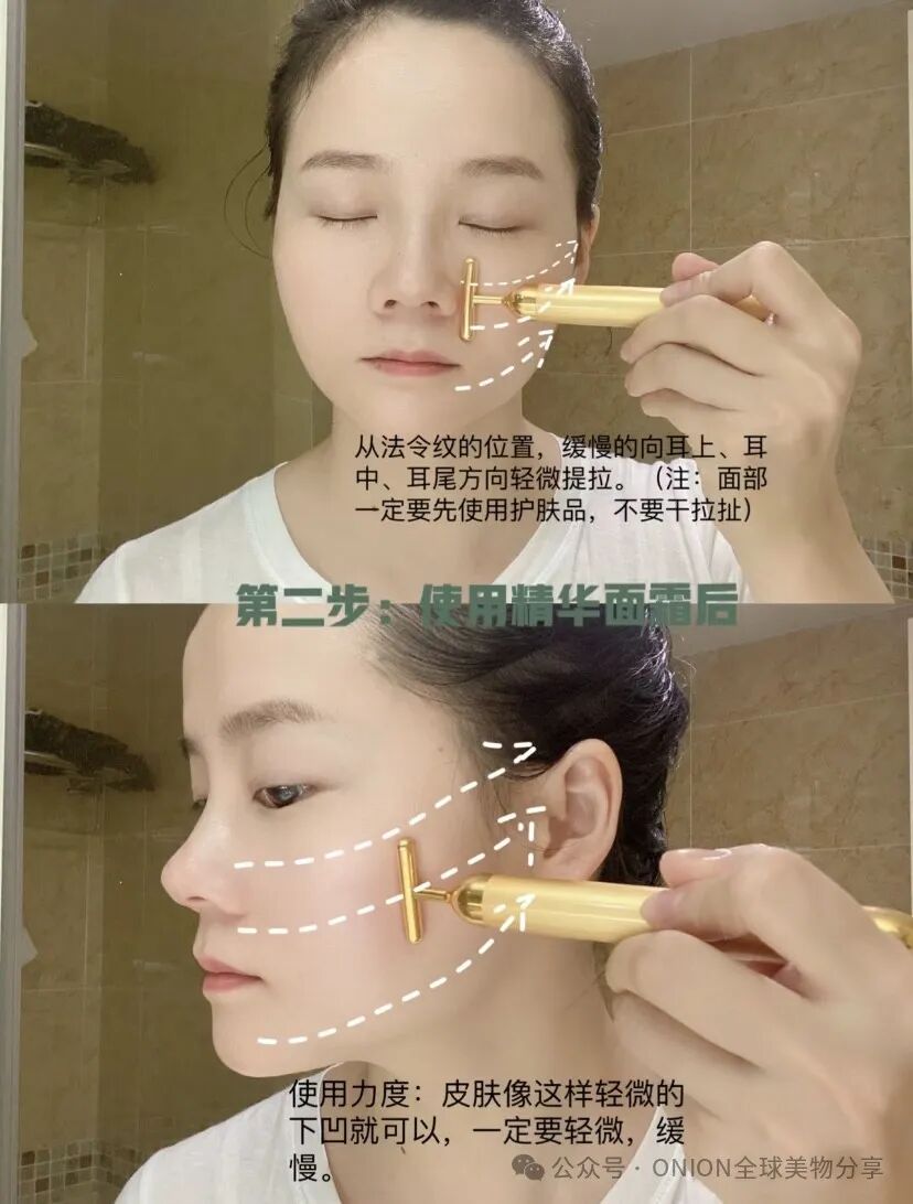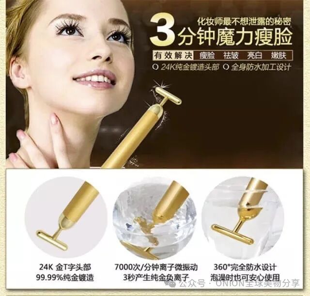 功效2:紧致提升。由于空气污染、工作压力等因素,会造成皮肤松弛,而通过24K金美容棒可以激活细胞活性,增强细胞能量,以达到收紧提升的功效