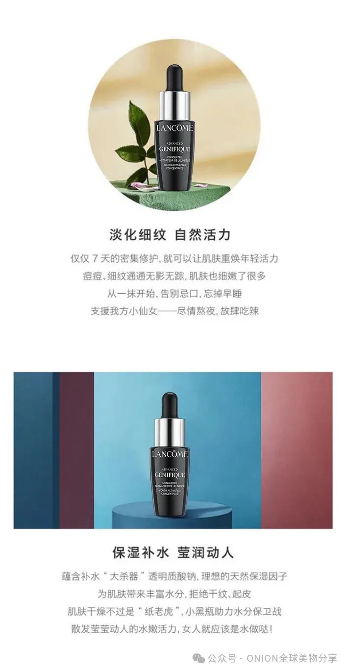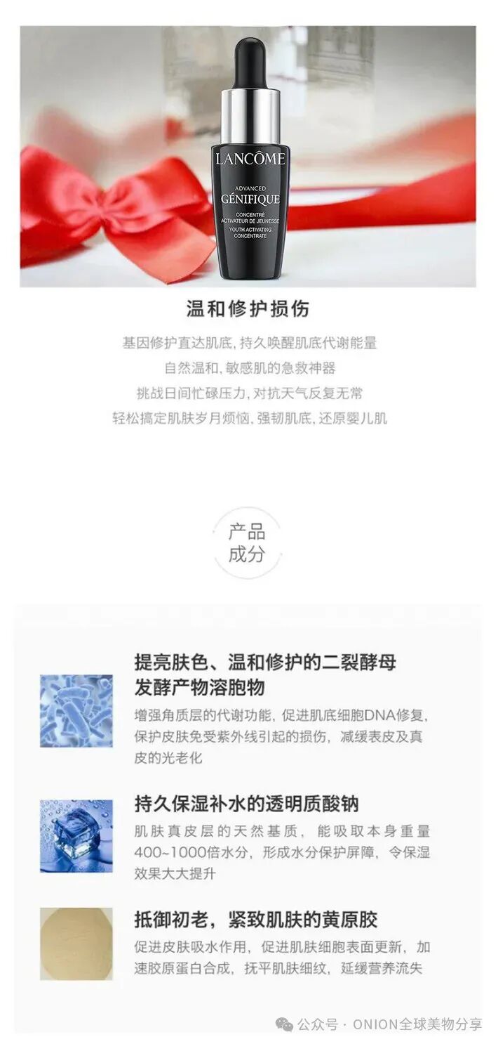 一款经久不衰的精华 黑瓶界的鼻祖 兰蔻家镇店王牌产品!细致毛孔,补水抗哀,清爽不油腻 油皮都可以放心大胆的用!