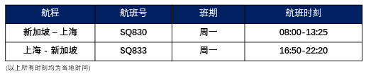 应运营调整,自2021年11月1日起,由新加坡飞往上海浦东的新航SQ830将由原计划新加坡当地时间9时30分提前至8时整从新加坡起飞,抵达中国上海浦东机场的时间也相应调整至当地时间13时25分。请搭乘SQ830的乘客们,千万别忘了提前抵达樟宜机场办理值机手续。