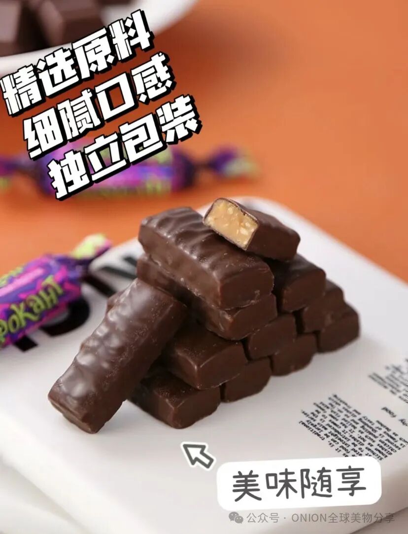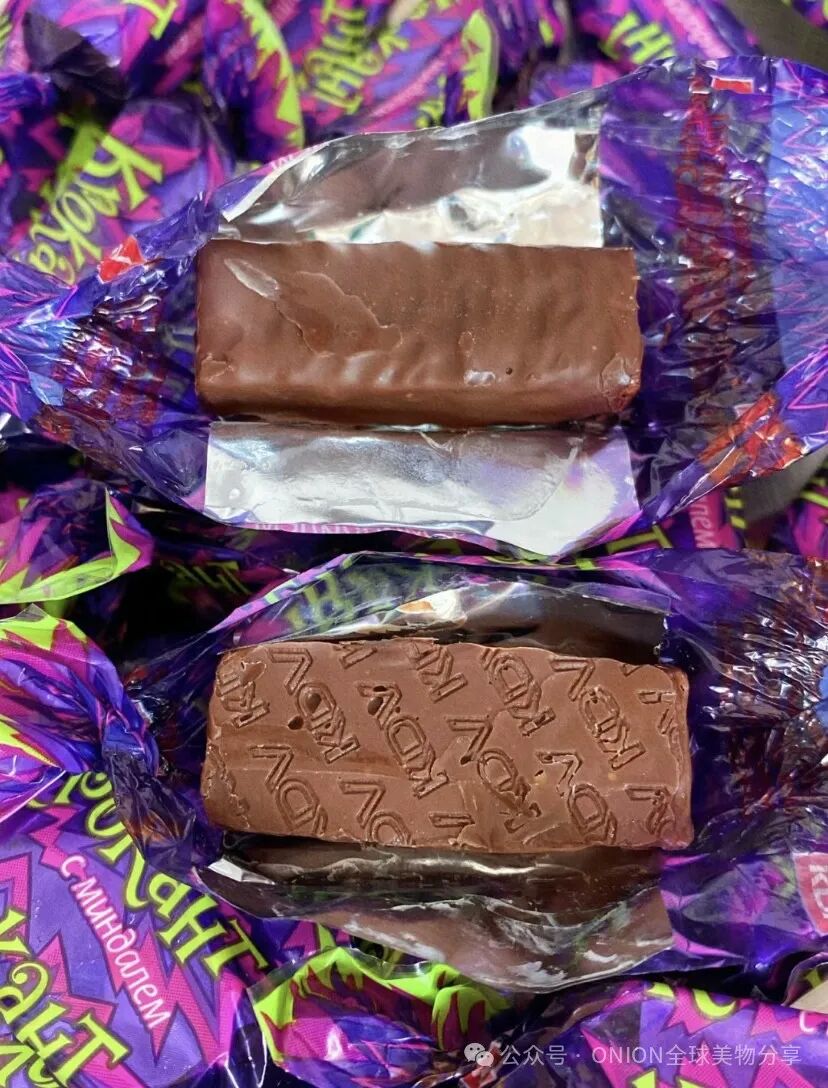 紫皮糖的俄语名是крокант其实就是“嘎嘣脆”的意思,打开咬一口,清香酥脆,一咬即碎,而且有很浓的巧克力香味和花生味儿,真的很香