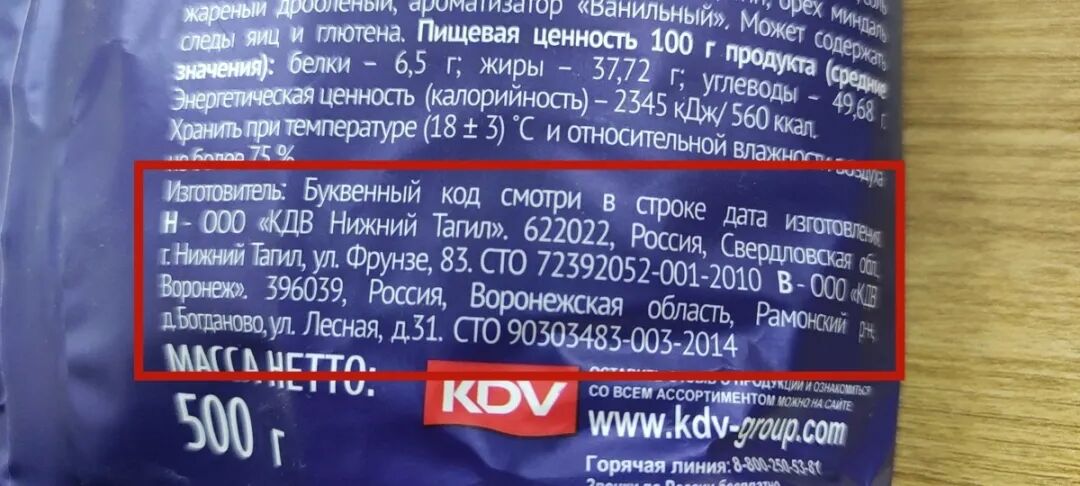KDV紫皮糖的产地在俄罗斯,并没有在中国生产,包装上可以看到它的原产国是俄罗斯,右侧有用俄语写的生产地址