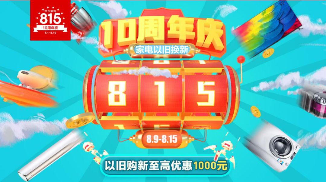 8月9日——8月15日,在京东家电十周年之际,淘汰旧家电,换个新产品,以此刻为新起点,开启新的十年,也让生活每一刻都靓丽如新。