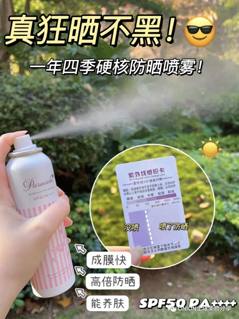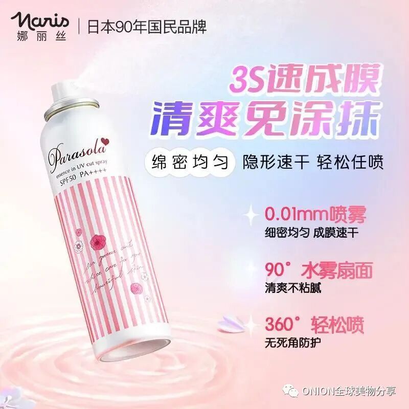 防晒霜是可以涂脸涂全身的,但如果你想更快速的给全身(包括秀发)上防晒,还可以搭配【Naris娜丽丝防晒喷雾】