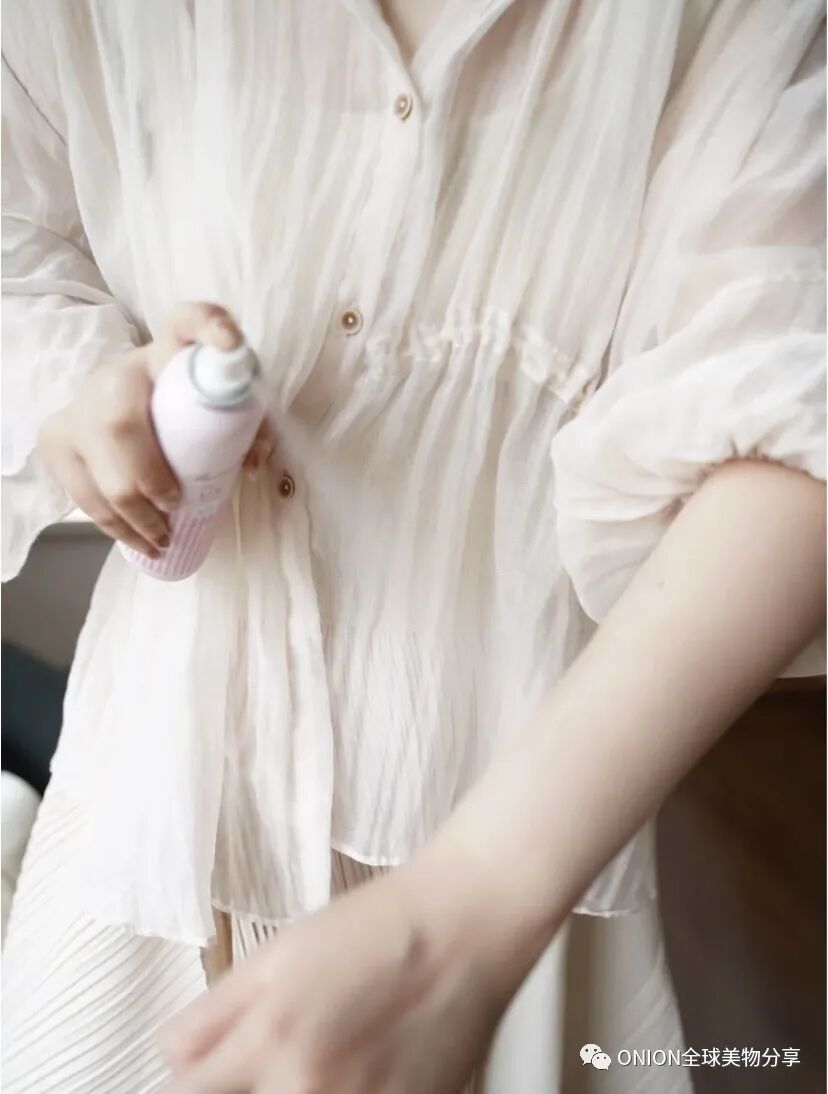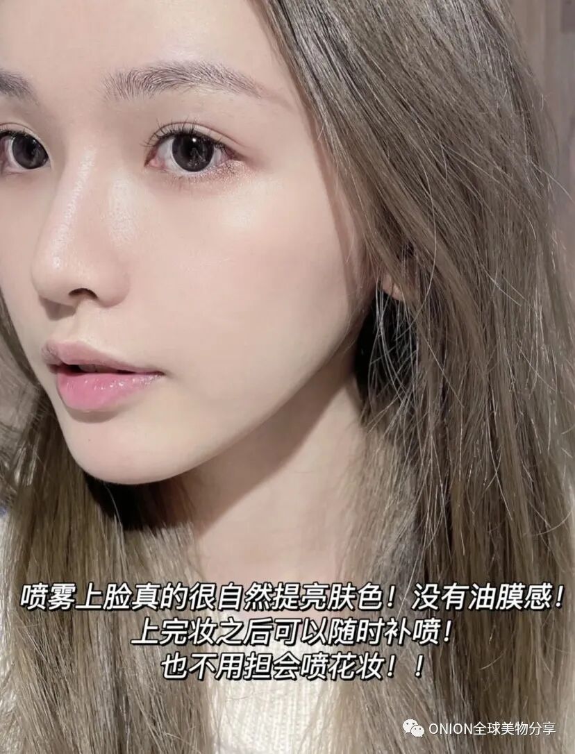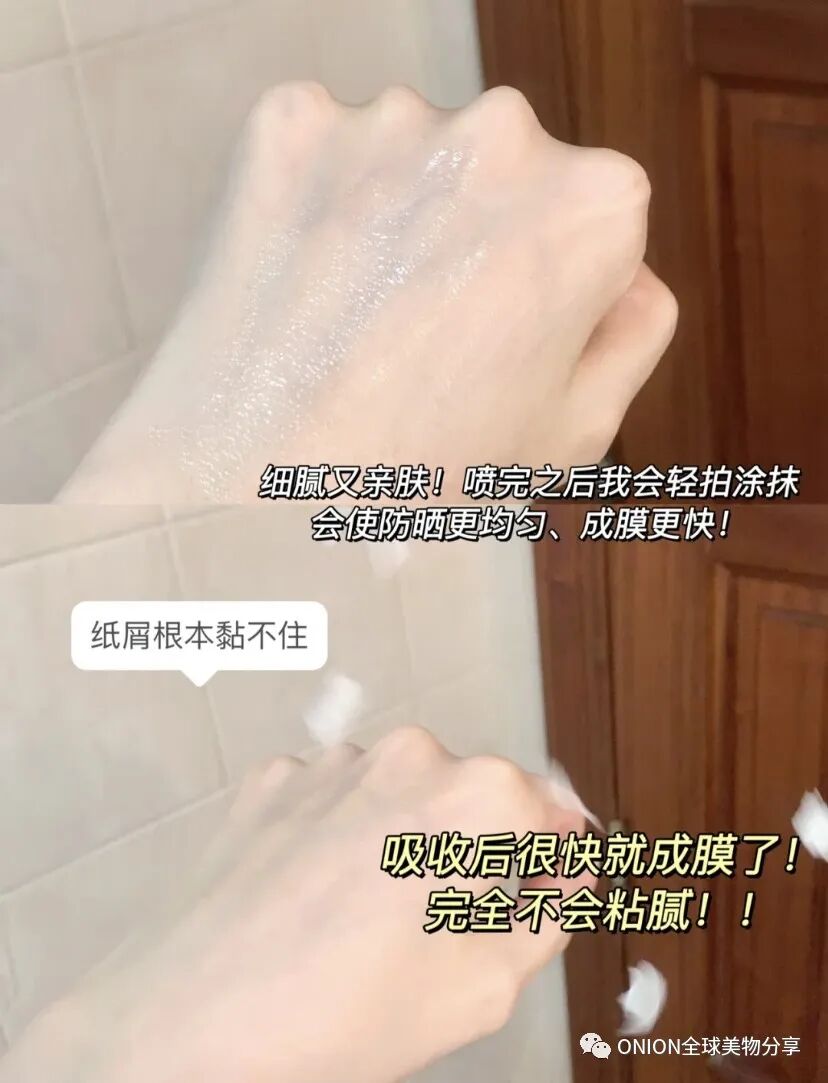 ⛱ 无色透明的,喷在肌肤上成膜很快,若是炎热的夏天,时间更加短⚡️而且,喷雾产品补妆也方便,完全不会花妆🧚♀️