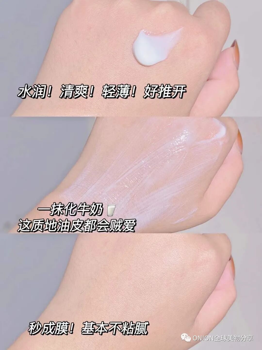 ⛱️它的质地是流动的,轻盈水润的,一推就开,不油