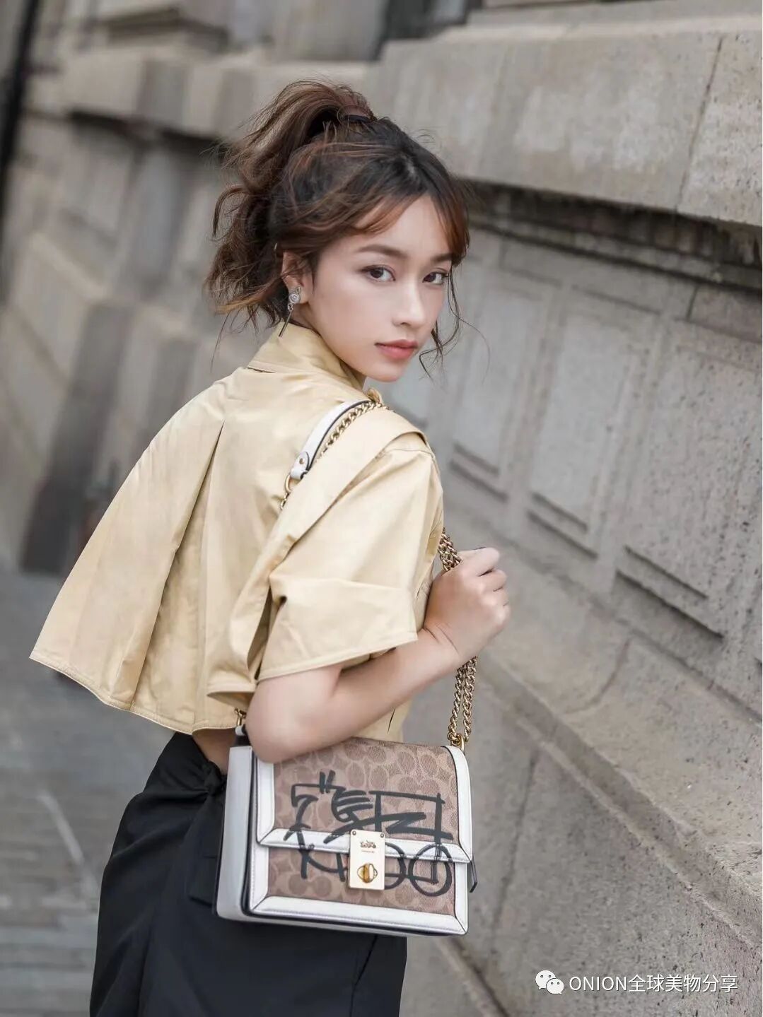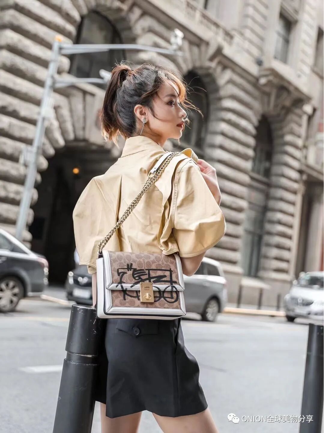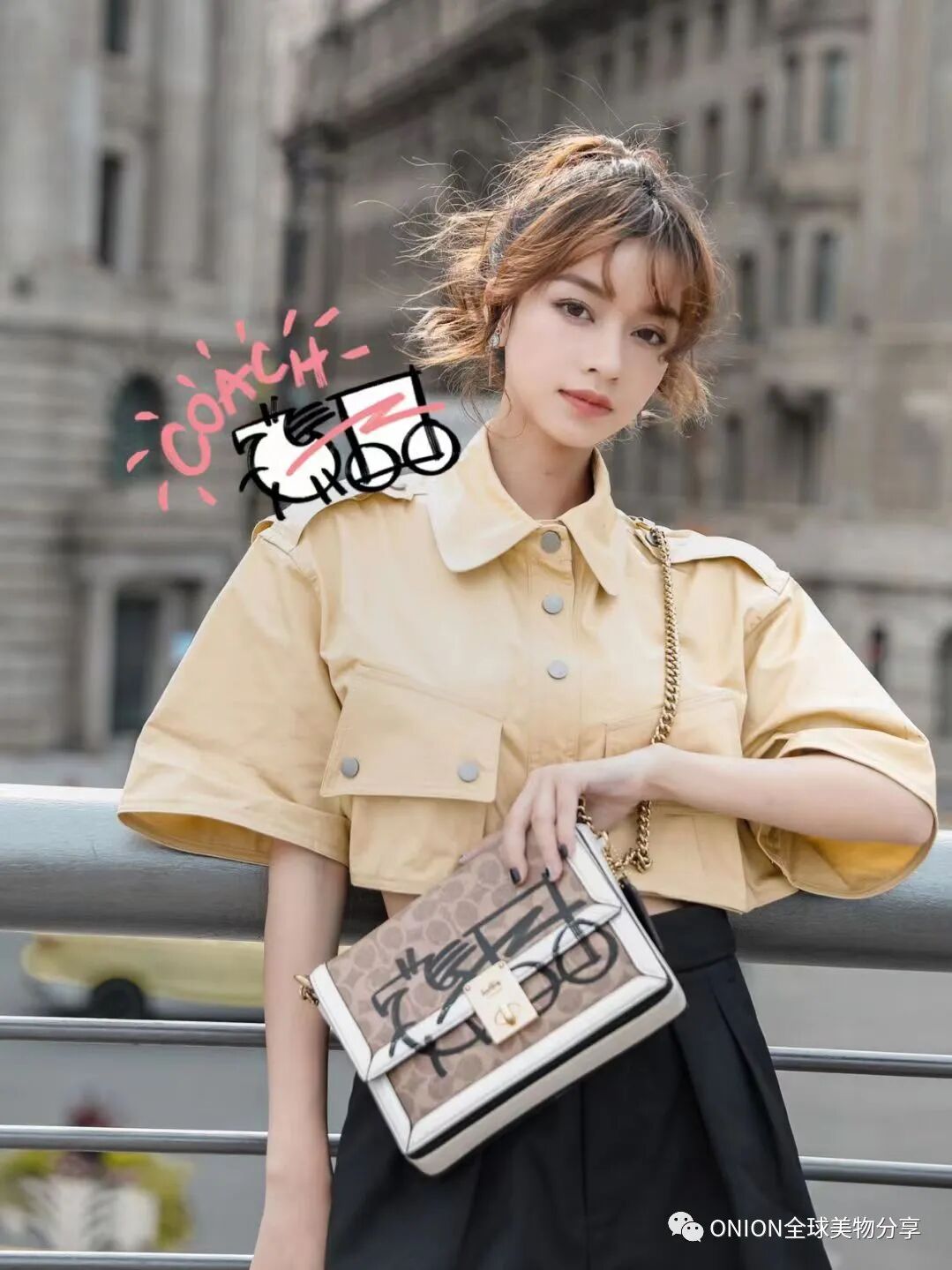 COACH斜挎小方包~经典棕色搭配白色包边,百搭颜色搭配趣味涂鸦,可爱却又不腻个性而又时髦