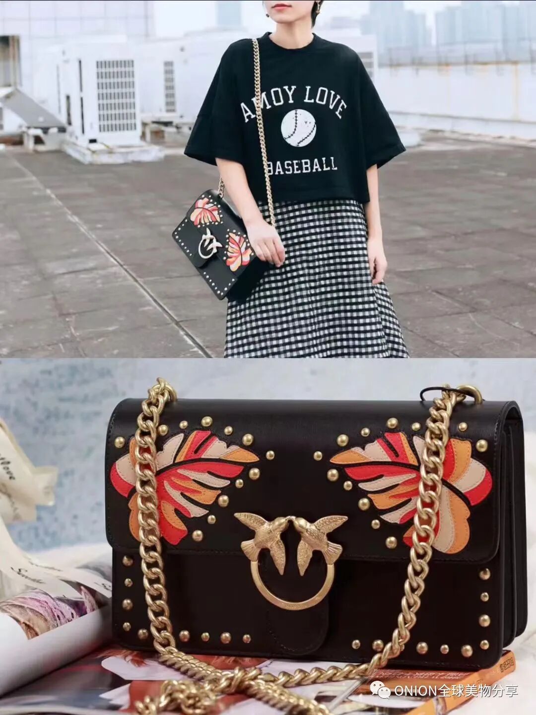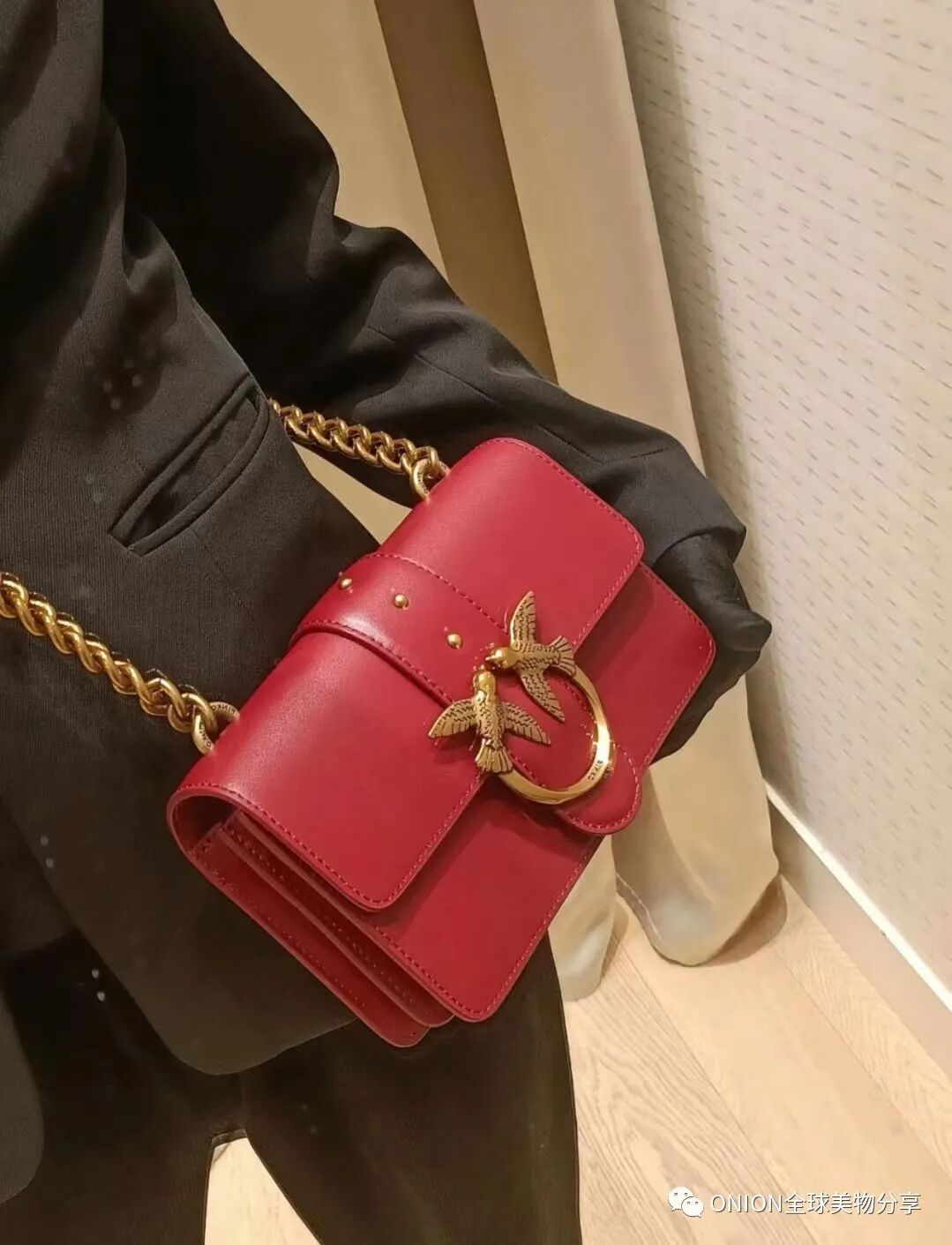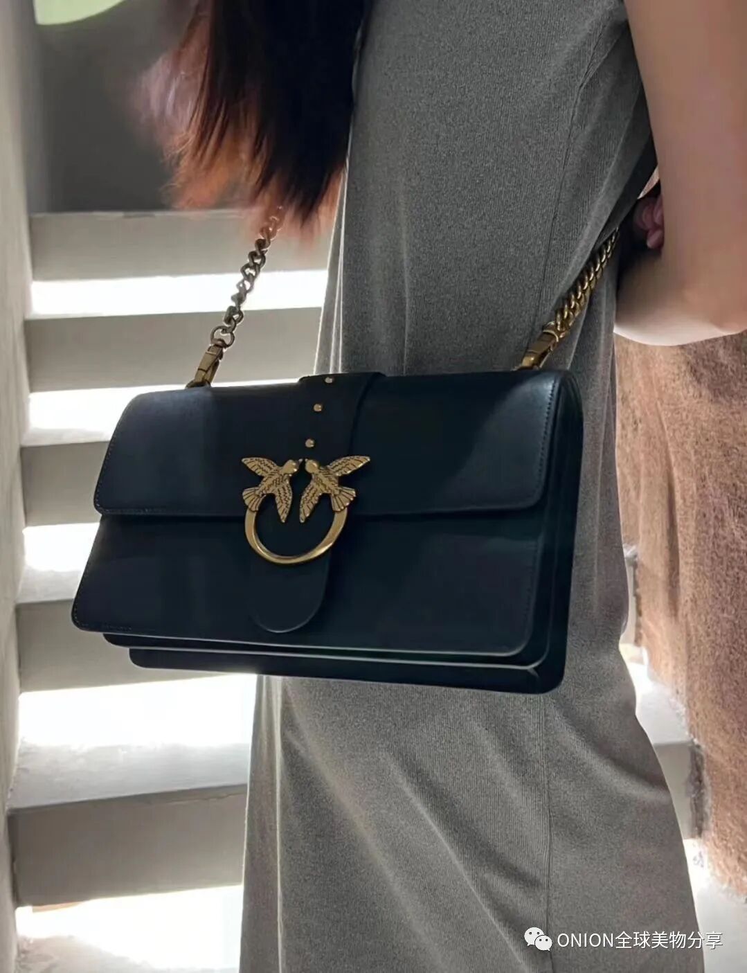 高性价比轻奢入门,Pinko经典包型依然不过时~飞鸟扣配链条设计,硬挺的包型皮面好打理,利落又多了几分飒爽!通勤、约会的大气百搭款