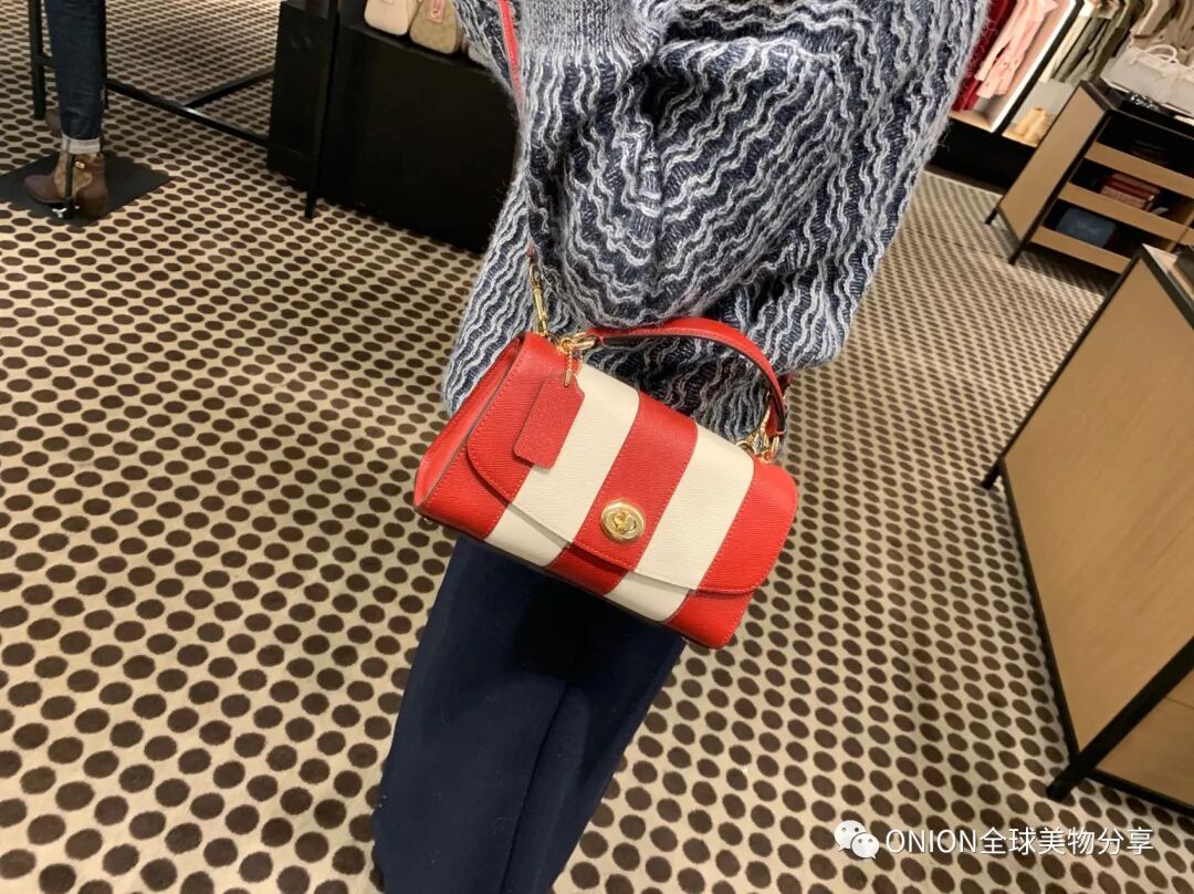 红白款条纹颜色靓丽,充满活力又不失大气,可手提也可单肩斜挎,随时搭配时髦吸精look