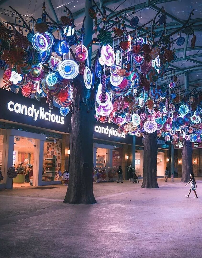 在环球影城入口的对面,是亚洲最大的糖果屋Candylicious,从环球影城玩完出来可以去逛逛,小朋友们会非常喜欢!店里是琳琅满目的各式糖果,店外则是用无数棒棒糖装饰的糖果树,让人仿佛置身梦幻的童话世界。