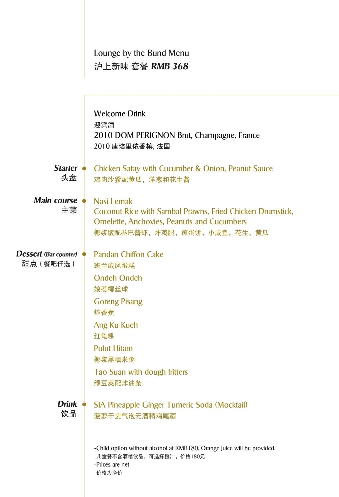 涵盖半自助午餐/晚餐及儿童套餐,