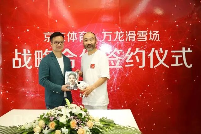 ▲ 左起:京东集团高级副总裁、京东商城时尚生活事业群总裁胡胜利、万龙滑雪场董事长罗力