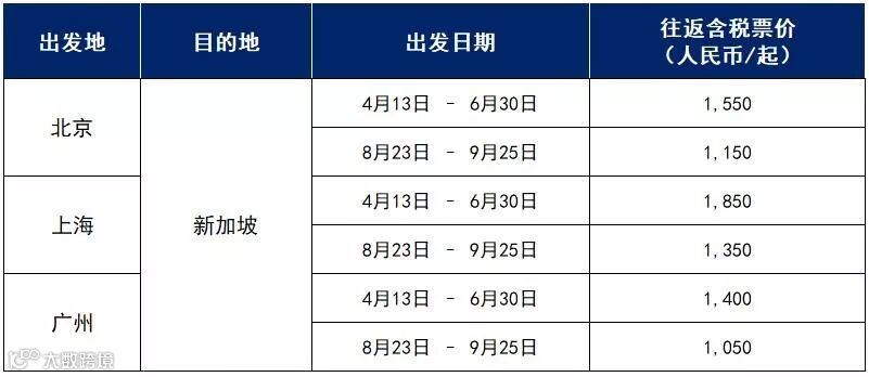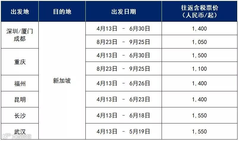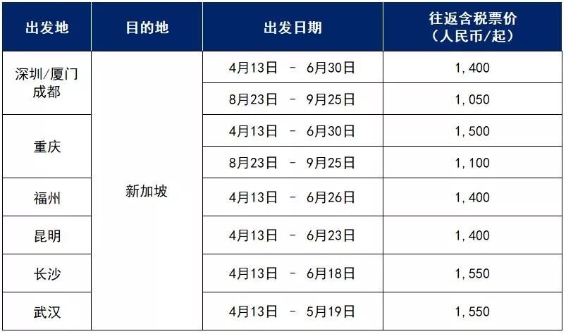 新加坡特别优惠。中国大陆11城出发至新加坡,