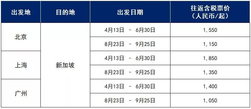 *促销舱位有限,价格以新航官网实际出票价格为准