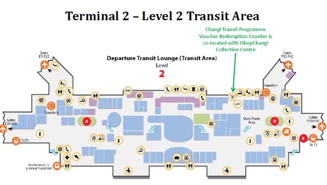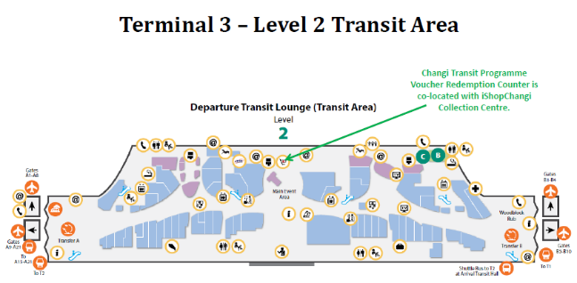 搭乘新航或胜安航空的乘客,往返两个航程都必须在樟宜机场中转,这意味着新加坡既不能是出发地也不能是目的地,而只是中转地。单程行程不可领取中转礼券。比如乘客行程如下: