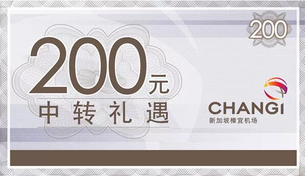 樟宜中转礼遇抵用券。