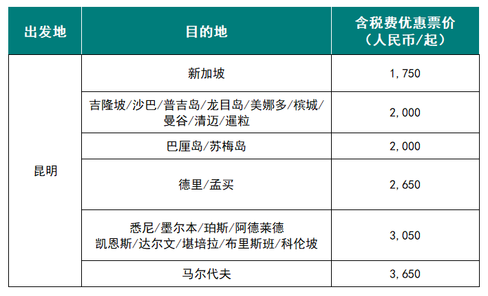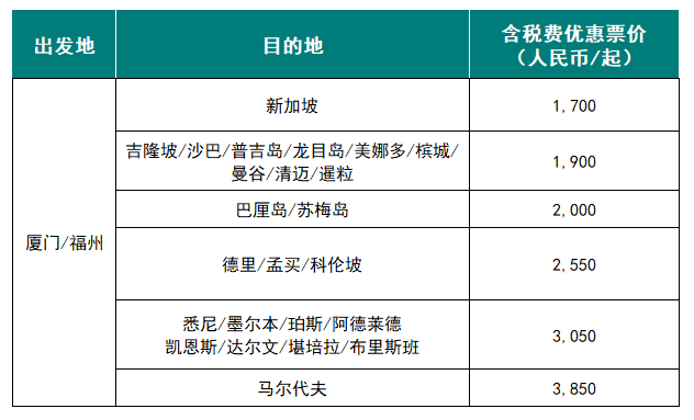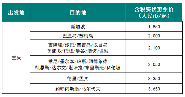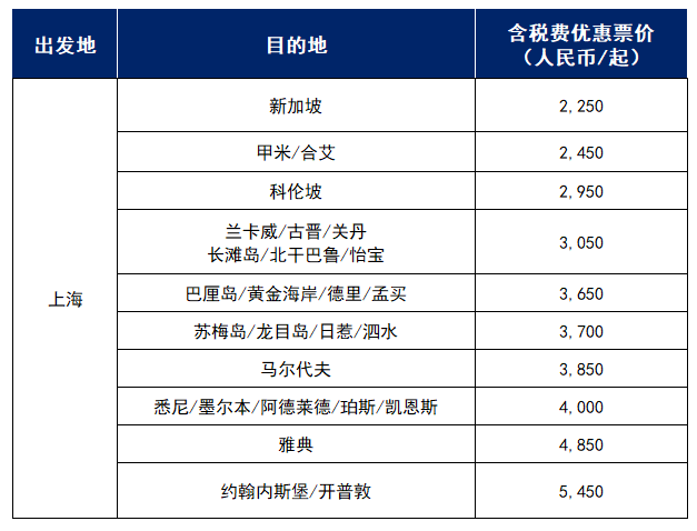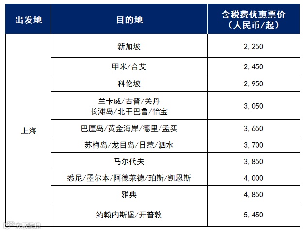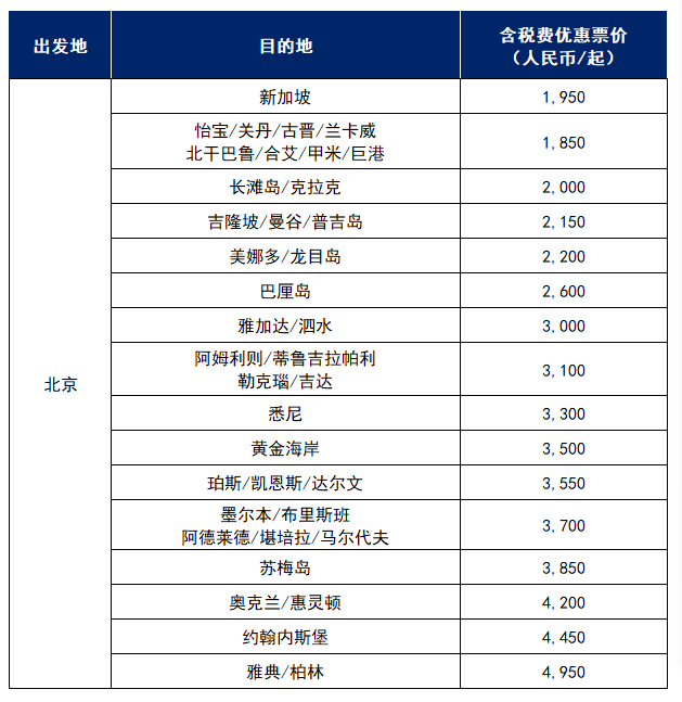 KrisFlyer会员通过新航官网购买北京/上海/广州出发的指定航线机票,并在搜索页面输入优惠码:KFSPGCN,即可悦享额外95折专属优惠 !