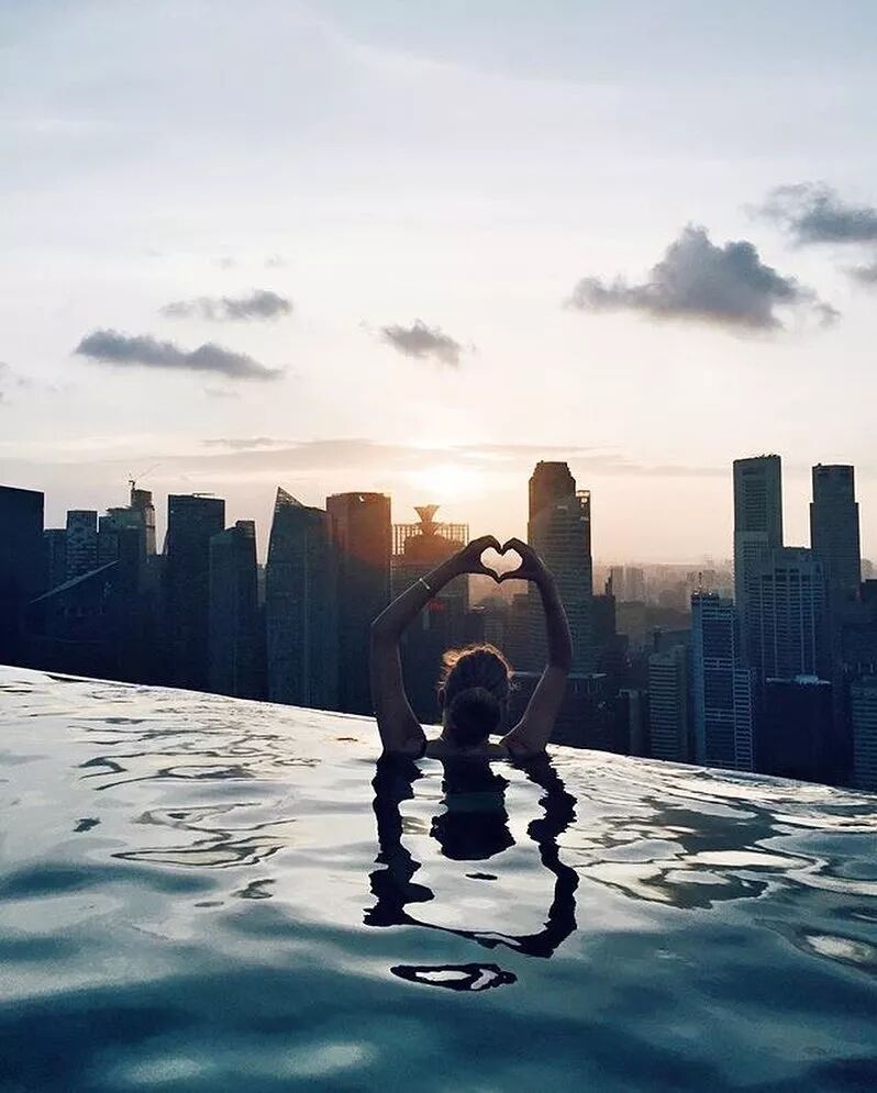滨海湾金沙的无边泳池绝对值得你专为它飞一次,但你也可以算好时间,早早起床来到酒店顶楼:看日出!早晨的新加坡有一种别样的美,这个时间的无边泳池人很少,也很适合拍照!
