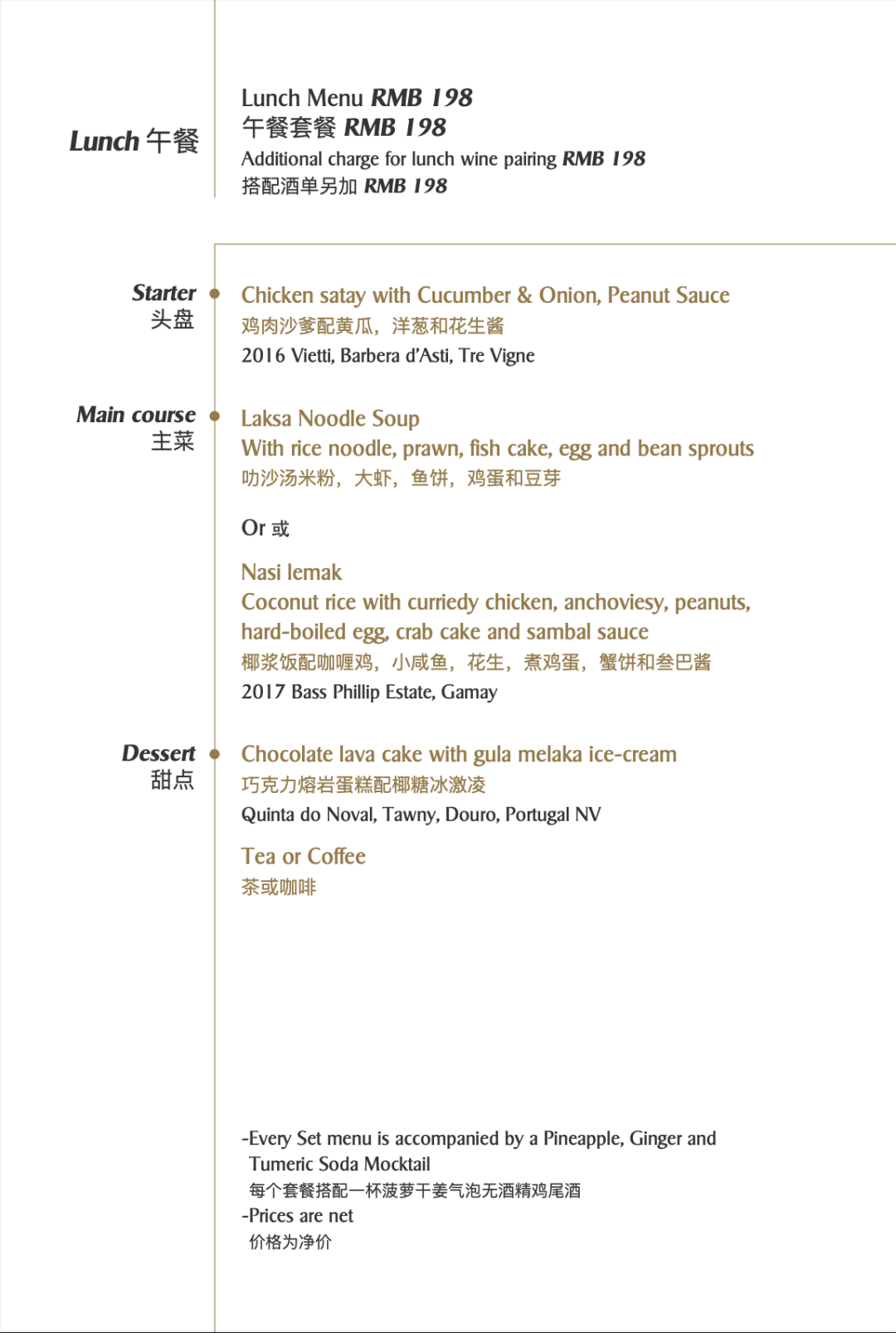 价格为人民币198元(午餐,每周一至周六)