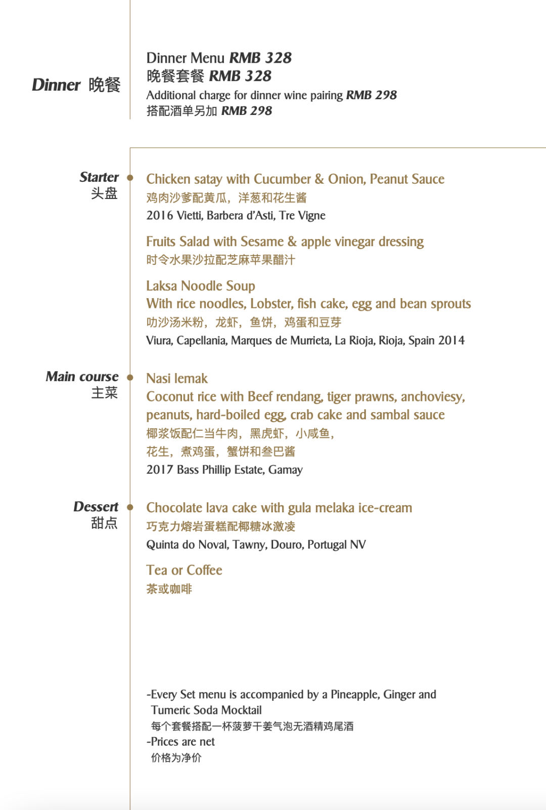 和人民币328元(晚餐,每周五至周日)。