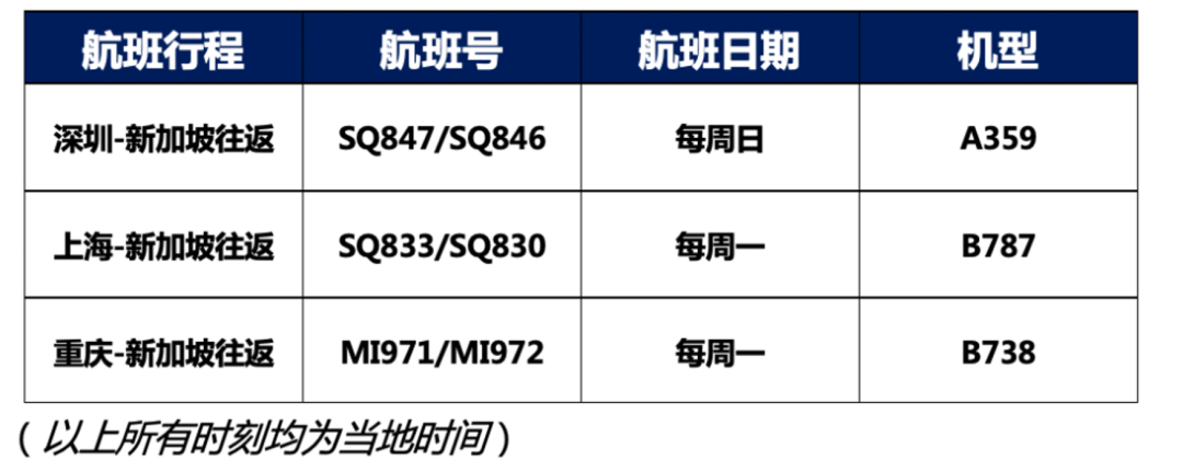 新航已于11月15日开通了深圳往返新加坡的直航航班服务,这是在每周1班上海(SQ)/重庆(MI)往返新加坡的基础上新增的中国大陆航班。