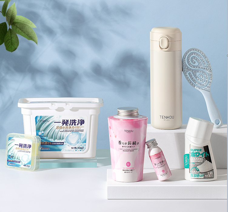 如「TENKOU RYUUGI天工流儀」品牌家居线产品“超浓缩洗衣凝珠”,颠覆以往单一洗衣效果及传统剂型,打造集洁净、柔顺、留香等多效合一的高浓缩配方,满足用户对洗护一体、用量可控的多元要求。「Evolution Han汉研工技」智能定时电动牙刷根据用户喜好,配置轻柔、清洁、亮白、抛光四个档位,契合不同群体对牙齿清洁的需求,并制定30秒换区、2分钟关机的智能计时模式,科学把控洁牙效率……