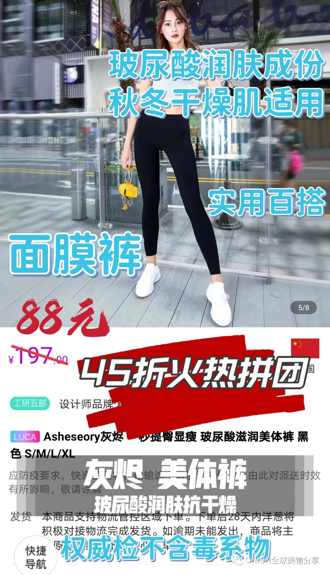 *洋葱O'MALL商城搜索🔍“灰烬美体裤”,然后“去拼团”,即可直接去拼单