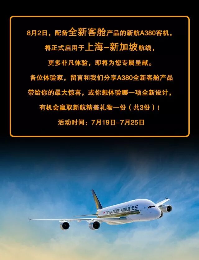 新加坡航空新航A380全新客舱产品将执飞上海航线,