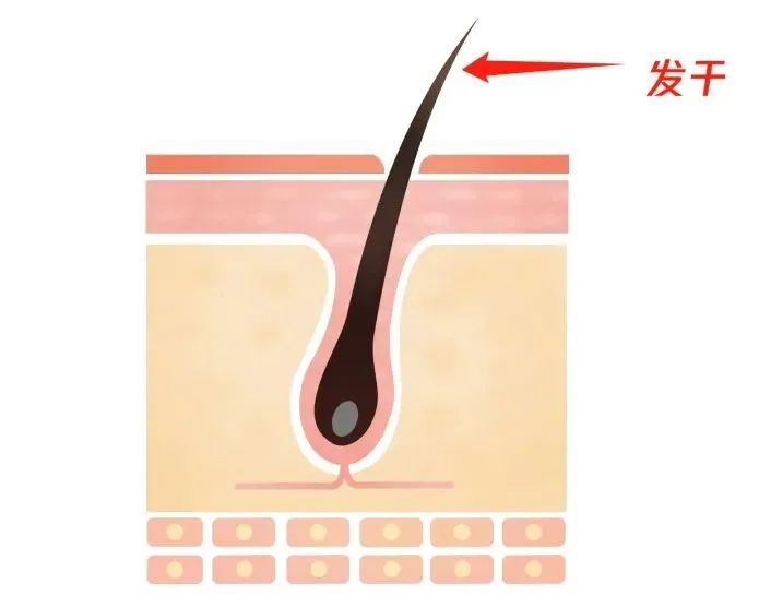 当毛囊底部的细胞死了,它们会留下一种叫做角蛋白的东西,这个过程就是角质化,角化细胞会逐层堆积并推向皮肤外面,于是就形成了发干