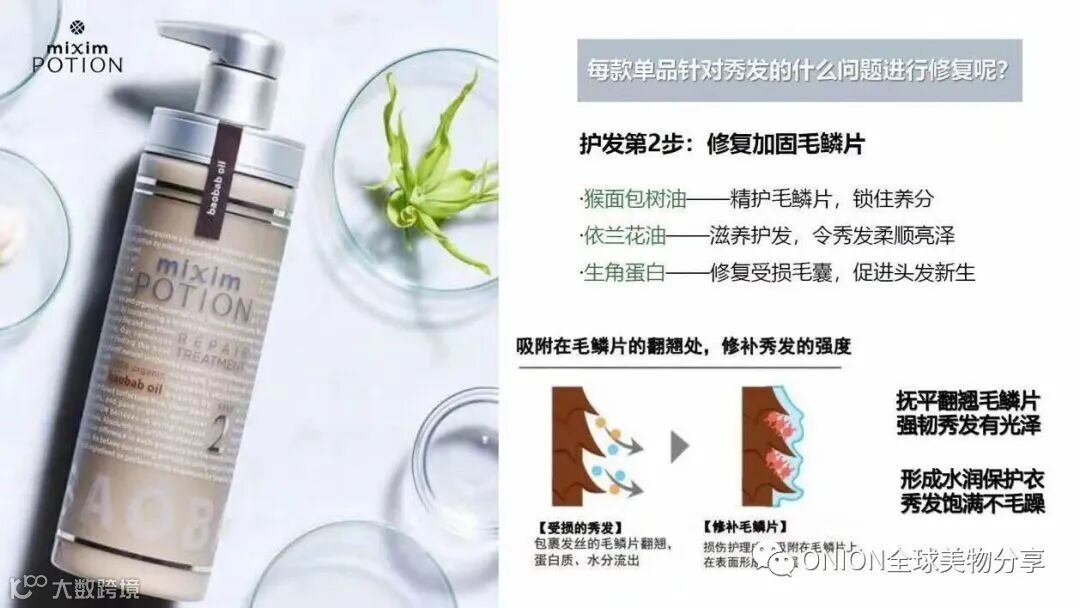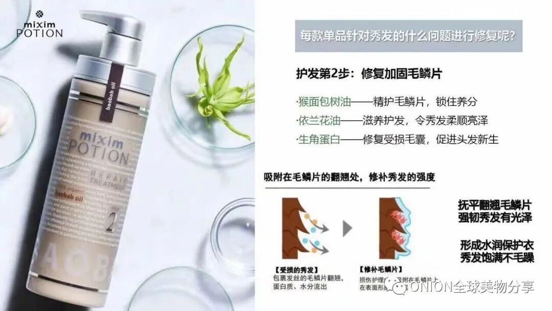 Mixim Potion携手猴面包树籽油、维生素B5等精粹为头发提供水润修护方案,倍护受损毛鳞片,唤醒柔顺亮泽秀发的沉睡因子,让丝丝秀发间散发如花漾般的馥郁清香。 |