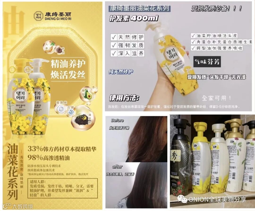 在户外,有太阳晒着,高温“灼烧”,在空调房又很干燥,所以秀发的养护也是不能忽视。康绮墨丽的油菜花洗护系类,核心成分是济州岛的油菜籽油,让干燥的发质得到滋养。而且里面有海域%拥有的韩方草本精华,是为了修护我们的头皮了。没错,就是做头皮护理的那个意思。