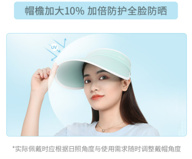 防晒三件套里怎么可以没有遮阳帽呢?天工的遮阳帽可以有专业认证确定可以阻隔95%的紫外线。同时又帽檐加大10%,力求防护全脸的防晒。(这10%对大脸真的很重要!谁懂!)