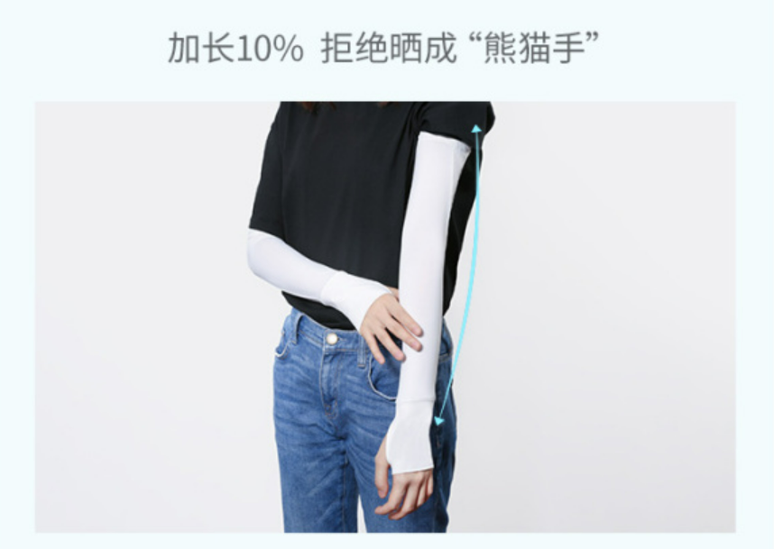 天工流儀的防晒冰袖在此基础的长度上再加多了10%,就是为了防止熊猫手。